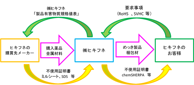 ヒキフネではお客様からの要求事項や欧州連合(EU)によるRoHS指令やREACH規則等の規制化学物質を独自に